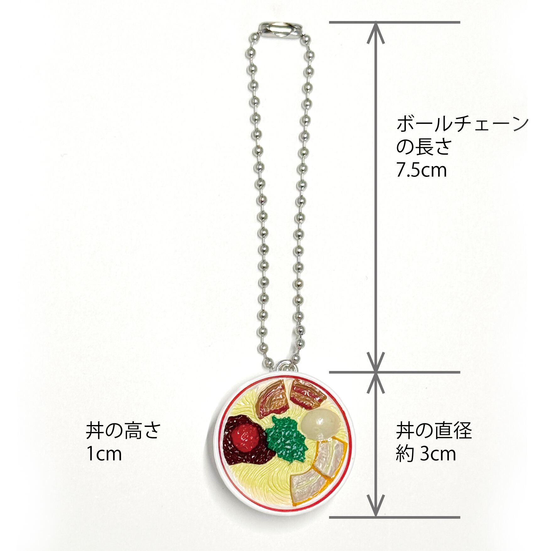⚫サイズ:丼の直径約3cm、丼の高さ1cm、ボールチェーンの長さ7.5cm